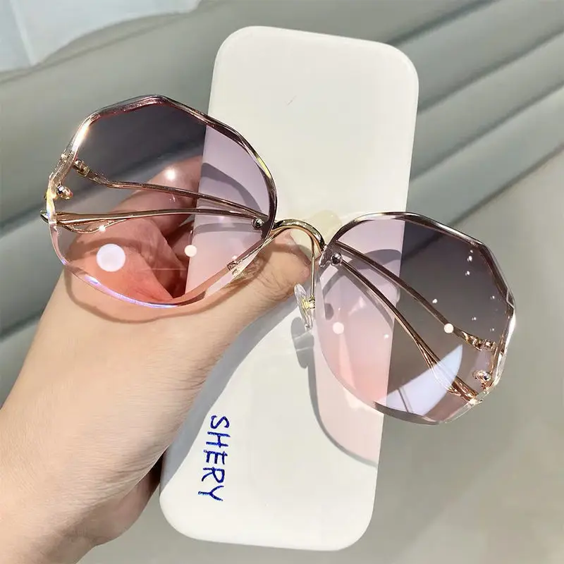 2022 Round Gradient Sunglasses Women Metal Curved Temples Ladies UV400 Eyewear Ocean Rimless Sun Glasses Oculos De Sol