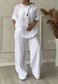 [Cotton Linen] Women's 2-piece Set Large Size Cotton And Linen Shirt Set High Waist Loose Trousers
