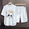 Men's Clothing 2024 Waffle Casual Summer Suit Men's Loose Teen Short sleeved T shirt Shorts Handsome Two piece Suit